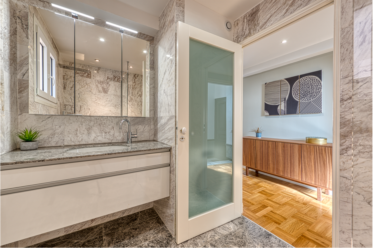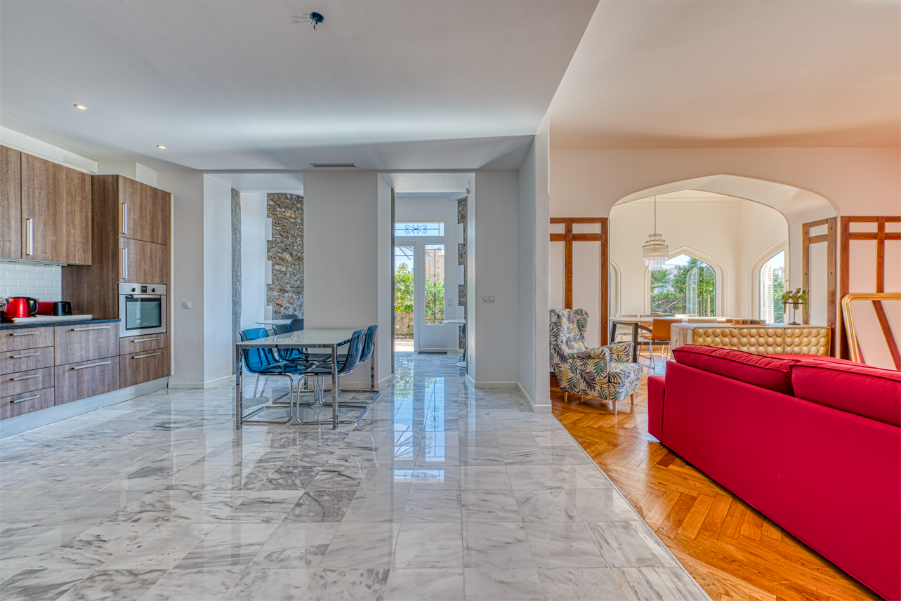 Technical features: Central climate control, adjustable in every room – no visible old fashioned AC unit, Intelligent housing system with surveillance capabilities, High quality machines from MIELE, All floors are genuine oak parquet, Bathrooms are all in marble, Insulated windows with sun reflecting technology